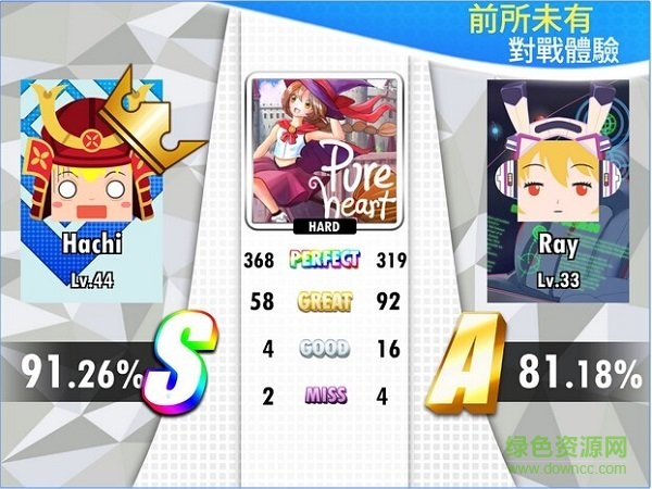 b、私看来游戏特色在于玩家之间的实时对战,进行曲目时会自动匹配对手(当然,可以跳过),右上会显示对手的完成度。曲目购买方式与当下的音游差别不大,况且好像没Google不能氪(也有头像,背景,装饰,曲目的内购)。
