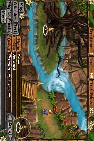 5.蝴蝶:需要完成小溪。需要有刀。可能需要升FARMING或DENDROLOGY。等溪水让黑莓下的草(STALK)回复生机后(蝴蝶会飞来),把小人放上去,他会找刀割草,然后满身草汁(蝴蝶会跟着他)。这时吊起小人,慢慢向树洞移动(不要太快蝴蝶跟不上)(最好把SPEED改成SLOW)。放到树洞,让小人把草汁擦树上。