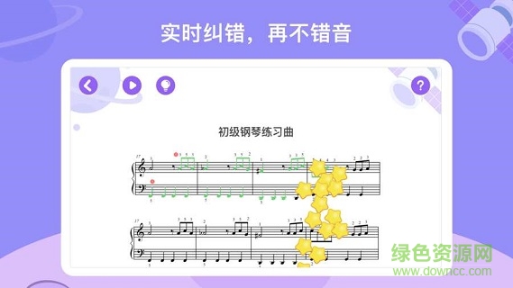 每首乐谱的练习步骤,均可实现实时纠错功能,孩子练琴时的对错家长一目了然。