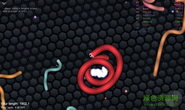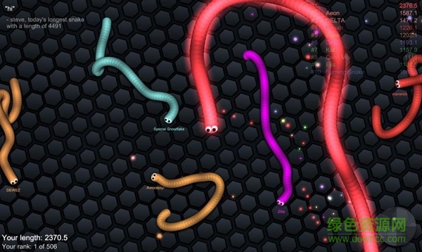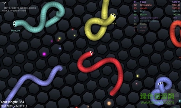 【】给你带来一种全新的竞技体验,你扮演的是一条小蛇,面对的也是各地的玩家,需要通过你的努力在群蛇之战中争夺食物,并最终成为全世界最长的那条蛇,还等什么,快来比比谁最长吧。