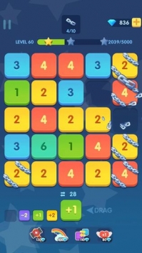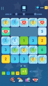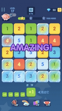 4、冰块关卡:打碎阻碍数字下落的冰块。