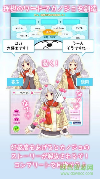创造女友安卓版还是单身狗,没有女朋友怎么办呢,来试试这款游戏吧,可以创造出你理想中的女友,十种不同类型的美少女全部围绕在你身旁哦。游戏的画风充满着日系的风格,看起来颓废无比的废柴宅男和各种青春年少的美少女,虽然你现实生活中没有女朋友,但是在游戏里却可以开后宫啊。在游戏里你可以给你的女朋友们赠送各种礼物来增加她们的好感度,并且好感度会让她们的外貌产生变化哦。