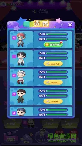 我要当歌星是一款简单的猜歌+合成的游戏。美妙的旋律,让节奏沸腾,让音乐自由。这里有着丰富的曲库,不仅可以猜歌答题赢收益,也能点各种各样的歌曲来听听,既能赚取收益,又能获取海量的歌曲,用途十分广泛,是打发休闲时光的利器。