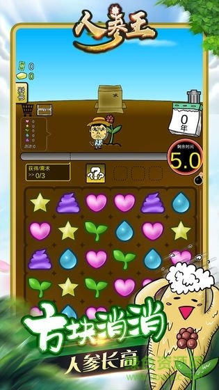 想收获全新的体验么,来试试培养人参吧!在拖动消除中尽可能多的获得养料,不断累积人参的年份。丰富的建筑、宠物、人参形象等待您的收集。一旦尝试就无法逃脱的人参魅力,快来一起发家致富吧!