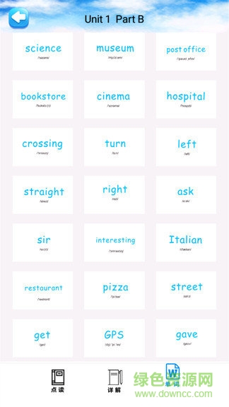 同步课本单词轻松记,包含发音、图片、例句等内容,口语评测发音。