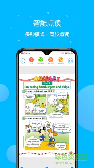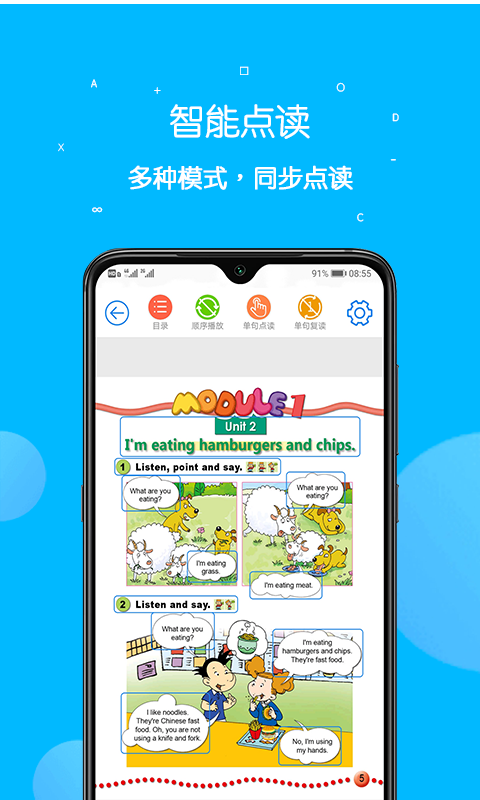 同步教材点读,哪里不会点哪里。单句点读、单句复读、顺序播放、智能翻译等多种功能助你学习。