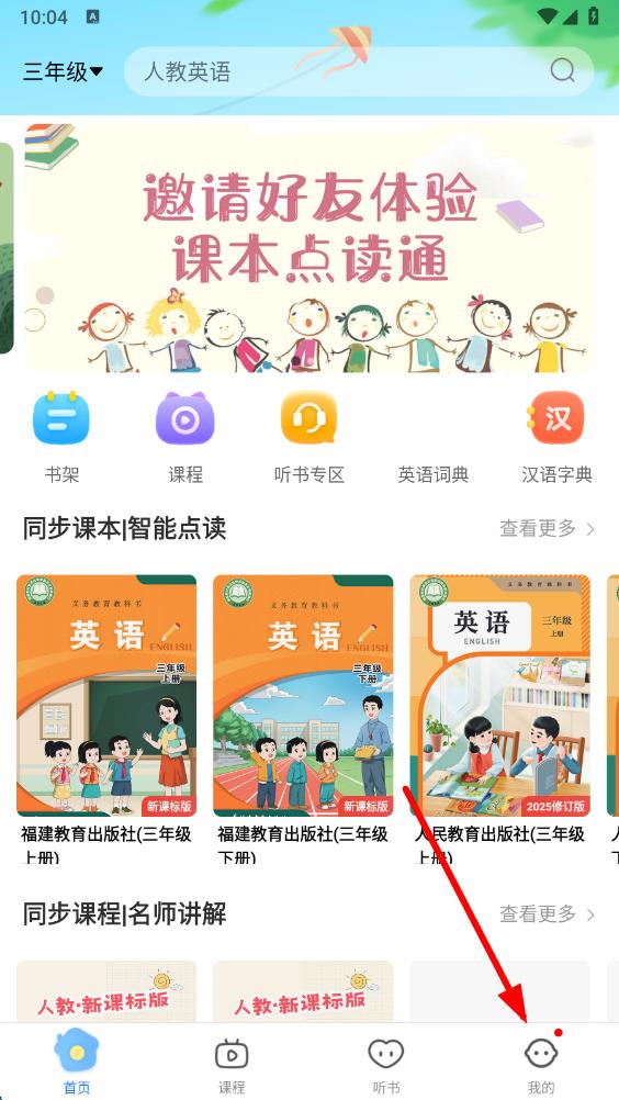 1、打开课本点读通app,点击底部导航栏中的我的,进入个人相关页面。