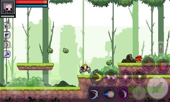 1.横版冒险更有趣,在不同的平台上跳跃躲避的怪物的攻击,减少自己受到的伤害.