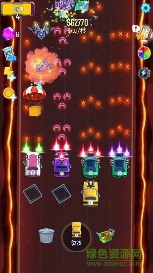 花费一定的钻石和金币来升级你的战车,能够提升你的战车的攻击力和攻击速度,合成才能够增加攻击范围。
