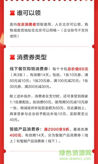 1、北京市商务局相关负责人表示,人在北京可以领,购物或者收货地址在北京也可以用,但企业账号不支持使用。