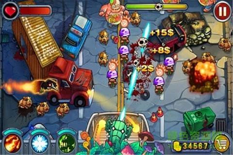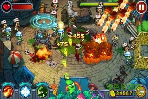 世界末日,僵尸来袭!点击屏幕即可发射子弹横扫僵尸,同时也可以通过释放强力技能瞬间消灭大批僵尸。 还可以操纵八种属性不同的植物与僵尸战斗,横扫爆破穿透狙击,让你充分享受血肉横飞的快感;赚得了金币,还可以在商店中升级植物属性,自身防御属性以及特殊技 能威力。还在等什么?现在就与植物们联手,大战僵尸拯救世界吧!