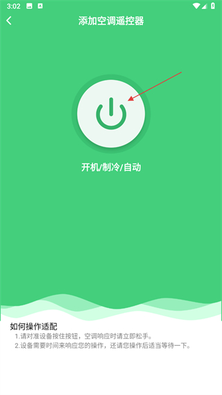 4、在添加空调遥控器页面,对准空调按钮,待空调响应即可。
