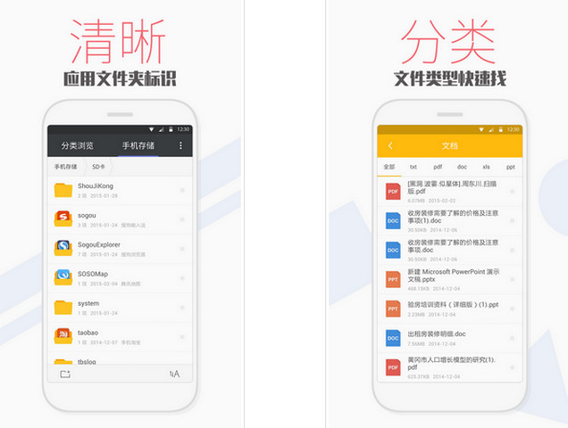 自研高速全盘扫描算法,智能分类手机中的图片、音乐、视频、文档、安装包、压缩包;