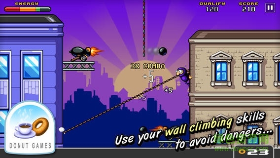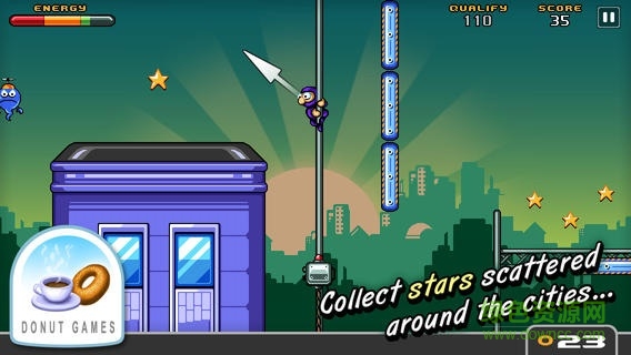 首先用手指按住忍者,瞄准好方向后松手,忍者就会使出信仰之跃,跳向远方,吃掉空中的星星。记住不要碰到四处游走的怪物和危险的机关陷阱,否则会扣除游戏时间的,在时间结束前你要保证忍者能够进入直升机里,并且所得分数达到要求后才能过关。