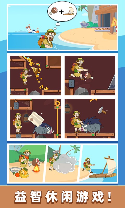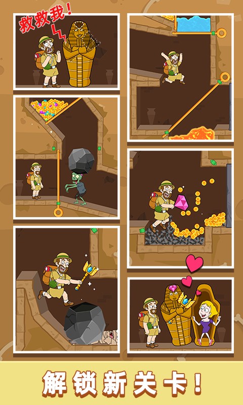 丰富多样机关谜题自由来发挥,动脑思考找到通关的办法,依次抽出棍子获得宝藏。