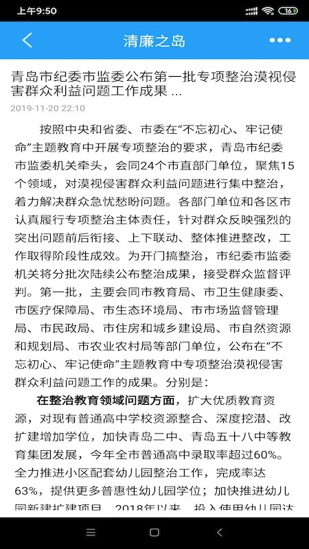 3.政务app与青岛市纪委监察委的官方网站同步更新,信息发布及时快捷,内容丰富全面。