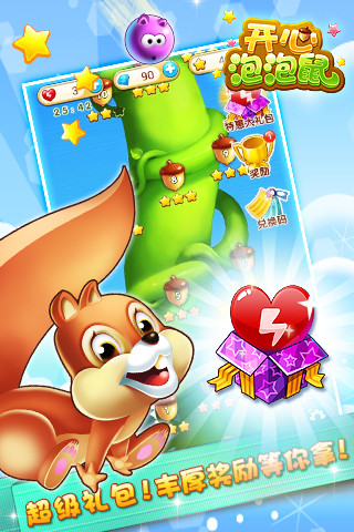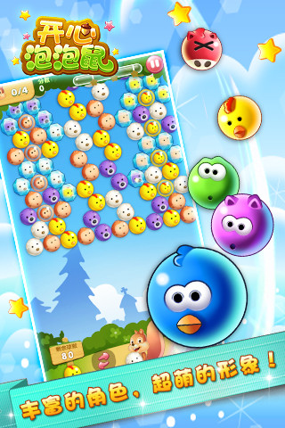 开心泡泡鼠是一款休闲益智类手机游戏,游戏画面清新亮丽,图中的泡泡非常可爱,游戏操作简单,和一般的泡泡龙玩法类似,同时又加入了10种障碍球,使得游戏更具有挑战性,喜爱的朋友赶快下载体验吧!