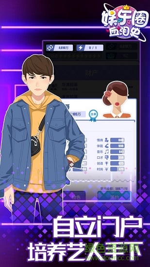 娱乐圈血泪史是一款非常有意思的模拟经营手游,采用精美细腻的游戏画质加上新颖的玩法带你感受不一样的指尖体验,简单的操作方式不仅可以培养各种当红流量明星更可以成为娱乐圈一线大咖参加各种活动拍电影等等,游戏上手容易可玩性高值得一试。喜欢的玩家赶紧来下载吧!