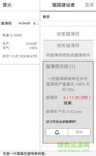 《猫国建设者》是一款文字类放置经营游戏,玩法与《小黑屋》类似。游戏中玩家可以建造多种建筑和收集多种资源,来一步步完善你的小猫王国。游戏虽然没什么精美的图片和动听的音乐,但还是有相当的经营乐趣。