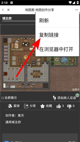 4、在功能菜单中点击复制链接,完成地图链接复制操作。