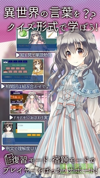--》故事间会出现小游戏「温习模式(勉强モード)」,玩家完成问答后就可以让部份异世界语的字母转变成日文,这样就可以渐渐了解大家的说话。