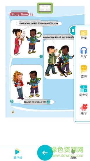 屏幕上同步课本的每句话都可点读,跟随读音逐句学习发音!