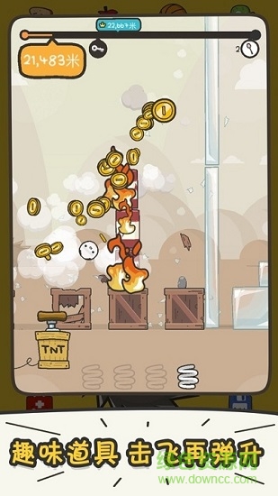 游戏玩法轻松又解压,在高速变化的力量槽中,预判!点击!接下来,就是一场华丽的飞行表演,力量槽的选择时机决定了你能打多远飞多高,想要屡破记录,可要好好琢磨一番!