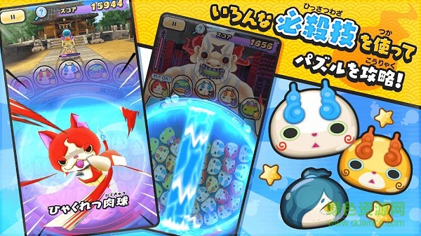 妖怪手表punipuni采用独特的游戏画风加上全新的消除玩法带你感受不一样的指尖刺激,简单的操作方式不仅有丰富的关卡更有欧总不同的模式选择,用5个不同的妖怪组成你的队伍,每个妖怪都有属于自己的必杀技,游戏上手容易可玩性高值得一试。喜欢的玩家赶紧来下载吧!