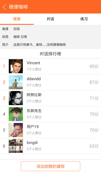 日常、旅行、商...各种分类各种难度,总有一个适合你,从身边的实用情景开始,轻松学会英语对话。