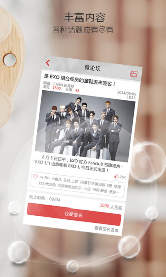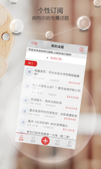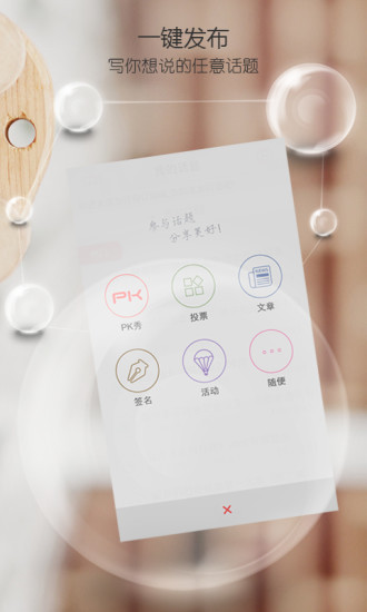话题吹吹为你打造最新颖、最好玩的话题讨论平台。这里有明星娱乐、星座运势、奇闻趣事,只要你想看的,都能找到。 在这里,你还可以创建、参与各种话题,明星PK、投票、签名、活动粉丝召集,形式多种多样。 除此,你还可以利用它轻松把各种自建的话题发到朋友圈,让朋友圈不仅仅是可以发图片和文字哦。 我们的APP就是这么为你着想。