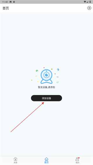 1、打开FOWL摄像头APP,在首页点击添加设备的按钮。