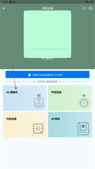 2、进入添加设备的页面内,点击4G摄像机的按钮。