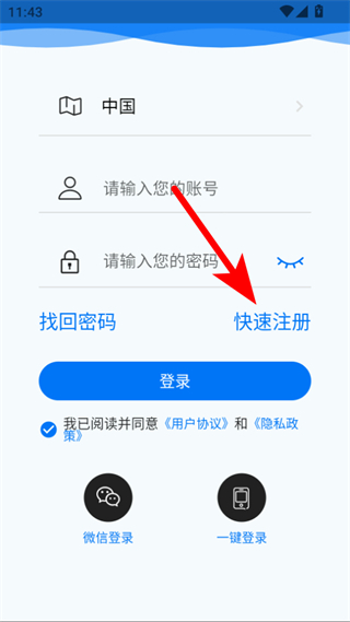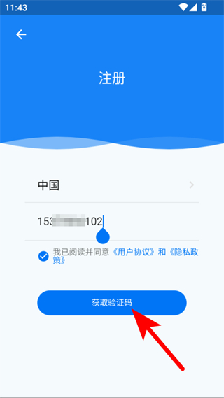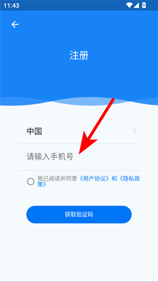 2、在注册页面输入手机号,勾选我已阅读并同意用户协议和隐私政策。