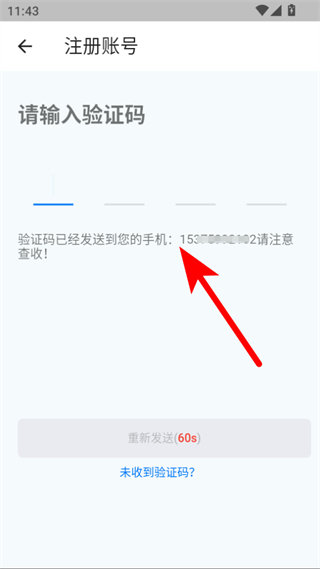 4、在验证码输入页面输入收到的验证码,完成账号注册后,即可根据APP提示操作使用fowl摄像头。