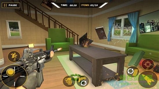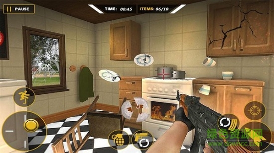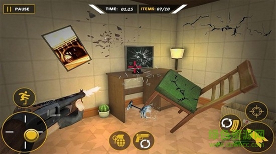 自由的移动和射击,在隔壁老王家中尽情的破坏吧
