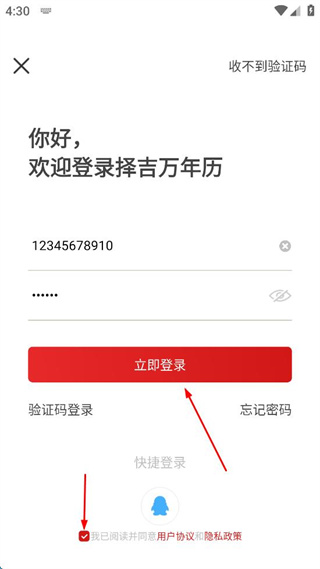 4、勾选已阅读并同意用户协议和隐私政策后点击“立即登录”按钮,完成登录操作。