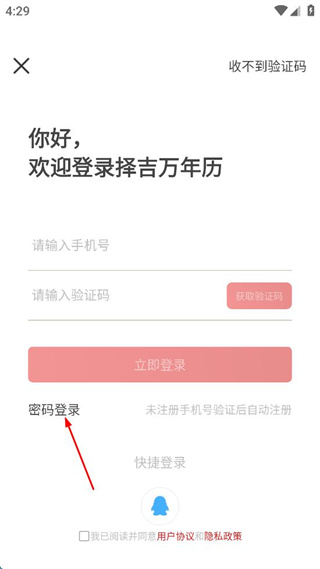 2、在登录界面,点击“密码登录”选项,切换到密码登录页面。