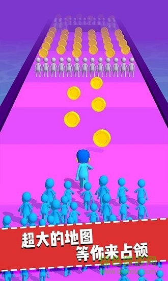 在奔跑的过程中你会遇到许多和你志同道合的人,他们会加入你的跑酷大军,你可以一个人吞噬慢慢变成一群人吞噬,你的人群会变得强大,努力成为最大的人群!聚集城市,用压到一切的人数让所有对手都颤抖!