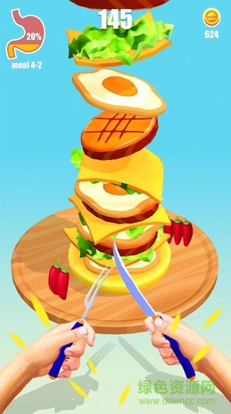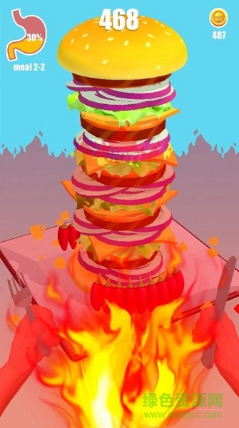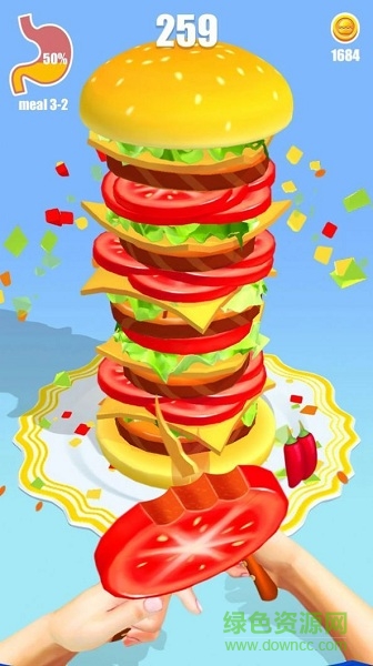 2、玩法操作机器的简便,流畅的控制着汉堡蹦跶,体验无限的欢乐;