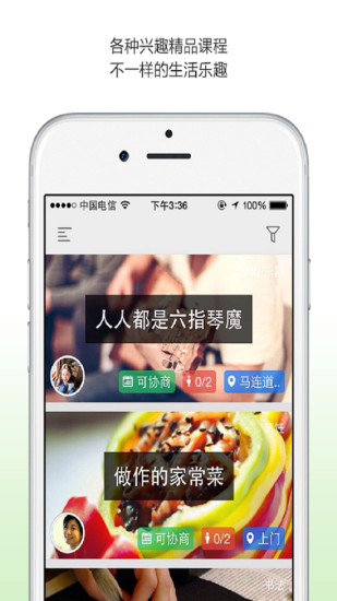 1.海量科目:汇集百种兴趣精品课程,实用英语、瑜伽、私房菜制作、创意美术、手机摄影、创业那点事儿等,课程全面且火爆,不管你想到没想到,这里都能找得到。
