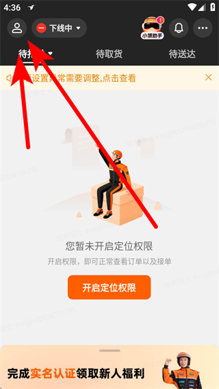 1、打开蜂鸟众包,点击左上角个人图标,进入个人功能操作页面。