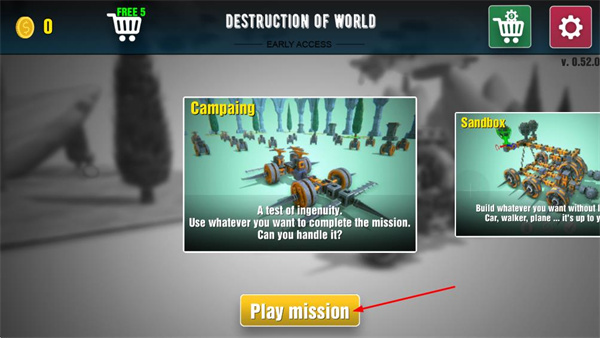 1、进入世界毁灭游戏界面,找到Play mission按钮并点击,进入任务关卡。
