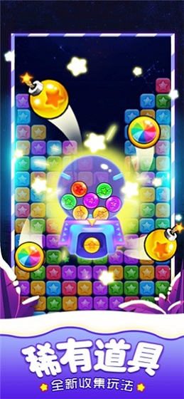 2、唯美的星星设计,酷炫的消除特效,不同的颜色星星消除特效不同;