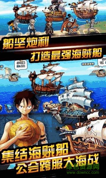 3、设置跨服大海战地图,自由航海路上搜集装备,改造升级桑尼号,参与公会战争。