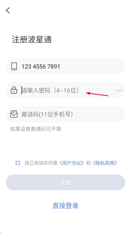 3、请输入密码栏设置密码,若有邀请码,在邀请码栏输入,没有则可不填。