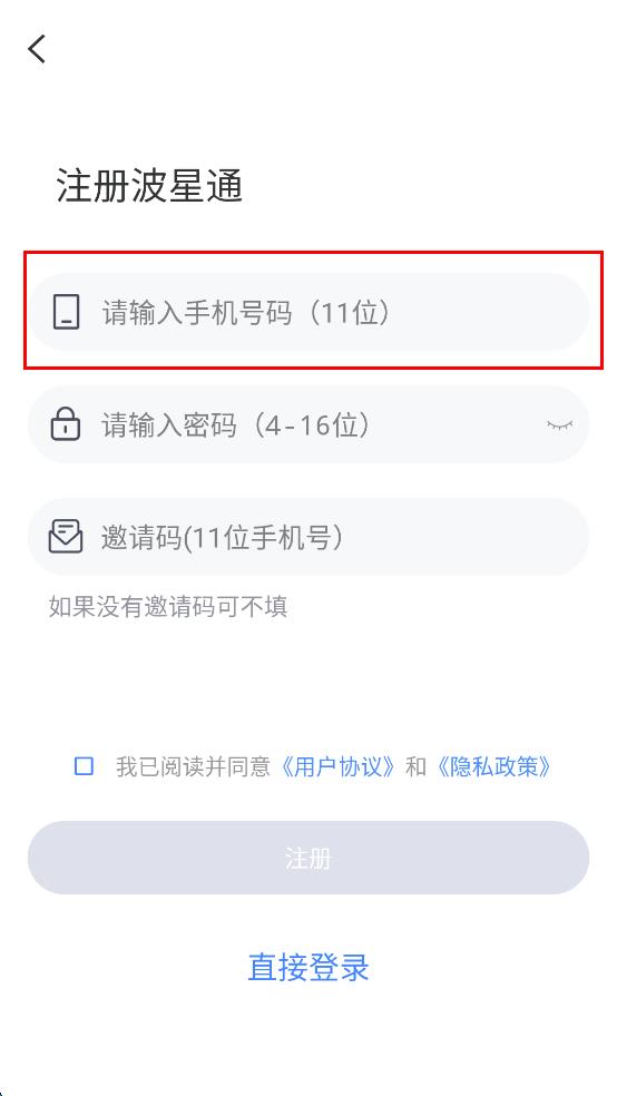 2、进入注册页面,在请输入手机号码栏输入要注册的手机号码。