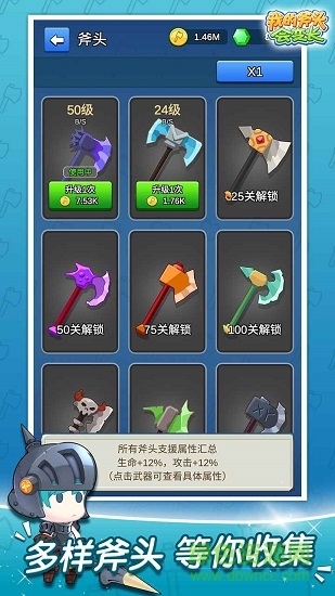 - 多样斧头等你收集:游戏中有多样的斧头可供玩家收集,每把斧头都有自身独有的效果。