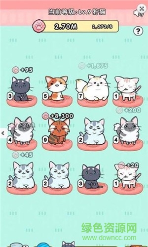 1、拥有多种不同种类的猫咪,可以通过合成升级解锁更多品种;