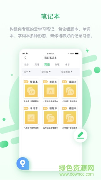 构建你专属的云学习笔记,包含作业本、错题本、单词本、字词本多种形态,帮你培养好的记录习惯。