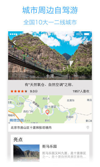 运营北京、上海、广州、深圳、厦门等 36 个一二线城市周边自驾游攻略,